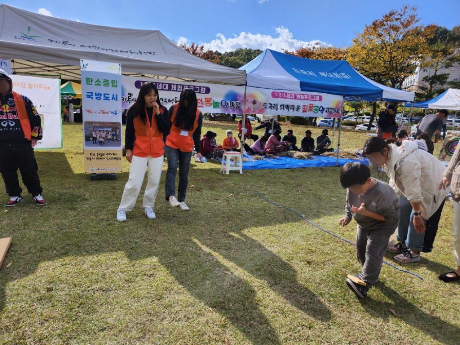 이중 마을과 함께하는 감성체험 (전통놀이) 부스에서 학생들이 신발 양궁놀이, 비석치기 등을 보조하였습니다 ☺ |