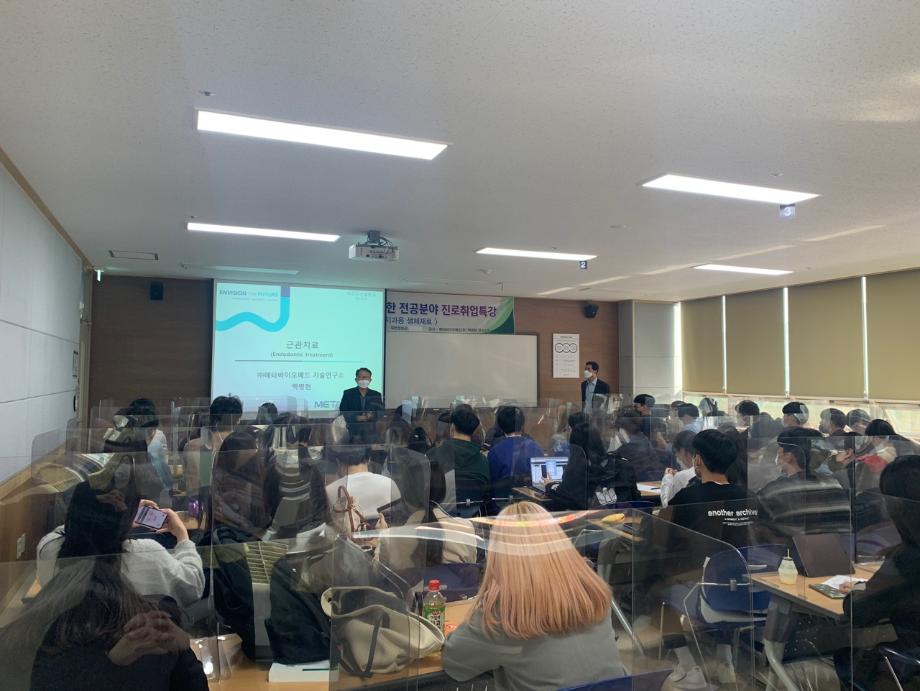 지난 11월 4일, 의료신소재학과 1~2학년 재학생들을 대상으로 지역인재 양성을 위한 전공분야 전문가 진로취업 특강을 진행하였습니다. |