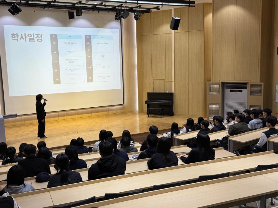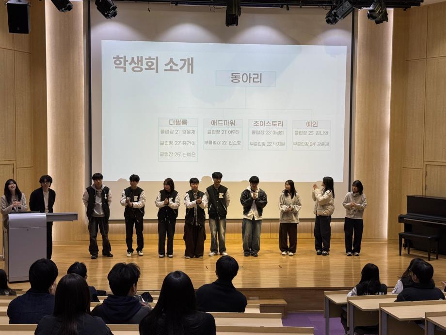 2026년 개강총회 - 26학번 신입생들에게 구체적인 학생회와 동아리,복학생 소개 등을 진행하였습니다