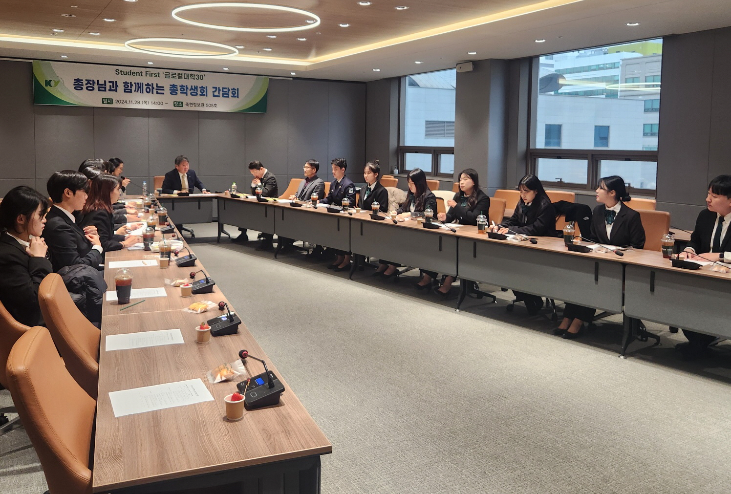 건양대-총학생회, 글로컬대학 사업 비전 공유하고 및 학생들 의견 청취 건양대학교(총장 김용하)는 28일 오후 대전 메디컬캠퍼스 죽헌정보관에서 2024학년도 총학생회 ‘그린’ 임원들과 김용하 총장, 최임수 부총장, 손승호 글로컬대학사업추진단 전략기획본부장이 참석한 가운데 총학생회 간담회를 진행했다. 이번 간담회는 2024년 한 해 동안 활동한 총학생회 그린이 임기 종료를 앞둔 가운데 그간의 노고를 치하하는 동시에 건양대 글로컬대학 사업에 대한 전반적인 설명과 추진방향에 대한 공유, 학생들의 건의사항 및 질의와 토론시간 등으로 이뤄졌다. 이 자리에서 그린 총학생회 이병현 회장은 “글로컬대학 사업이 선정된 것에 자부심을 느낀다”며 “앞으로 사업운영으로 인해 많은 변화들이 있을텐데 재학생의 불이익을 최소화하고 이 사업을 계기로 학생들을 위한 학업환경 및 제도 개선이 이뤄져 발전하는 대학으로 나아가길 바란다”고 밝혔다. 건양대 김용하 총장은 “창의융합캠퍼스와 메디컬캠퍼스 양 캠퍼스 어느 한 쪽도 소홀히 하지 않고 함께 환경을 개선하고 발전시켜 나가도록 노력하겠다”며 “학생이 최우선인 대학, 학생들이 즐겁게 다닐 수 있는 대학으로 발전시켜나가겠다”고 말했다.