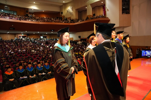 이날 학위수여식에는 건양대 설립자 김희수 명예총장과 건양교육재단 김천중 이사장, 건양대 김용하 총장, 국군의무학교 정준규 학교장, 건양대 총동문회 구훈섭 회장 등과 함께 대학 전체 교수진과 직원들이 참석했고 1300여명의 졸업생과 가족들이 함께 했다.