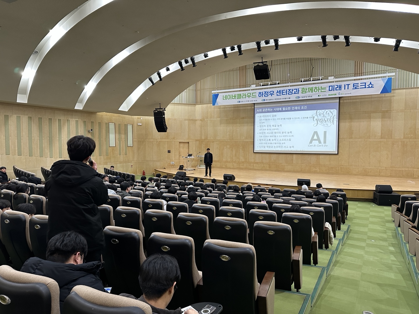 건양대 SW중심대학, 네이버클라우드 하정우 센터장과 함께하는 미래 IT 토크쇼 성황리 종료 건양대학교(총장 김용하) SW중심대학(단장 김용석)이 27일 건양대 대전 메디컬캠퍼스 죽헌정보관 리버럴아츠홀에서 신입생 및 재학생을 대상으로 진행한 ‘네이버클라우드의 하정우 센터장과 함께하는 미래 IT 토크쇼’를 성황리에 마쳤다고 밝혔다. 이번 토크쇼는 인공지능(AI)의 최신 동향 및 미래 전망에 대한 이해 증진 및 학생들에게 실무적인 AI 관련 경험과 통찰력을 제공하기 위한 목적으로 진행됐다. 토크쇼에 앞서 진행된 SW중심대학사업단장 및 하정우 센터장 등 관계자들과의 간담회에서는 인공지능의 최신 동향, 산업 활용사례, AI 기술 및 산업의 미래 방향, 네이버클라우드 센터와 협력 강화 및 AI·SW 교육 발전을 위한 논의를 진행했다. 또한 전문가와의 직접적인 소통을 통해 실질적인 진로 탐색 기회를 제공하고 최신 기술 동향 및 실무적인 인사이트 등의 제공 필요성에 간담회 참가자들 모두 깊이 공감했다. 하정우 네이버클라우드 AI 이노베이션 센터장은 대한민국 인공지능(AI) 분야의 선도적인 전문가로 이날 학생들에게 ▲AI 시대 대학생이 준비해야 할 미래 역량 ▲ChatGPT 이후 생성형 AI의 미래와 미래 직업 전망 ▲AI 분야 취업 준비를 위한 취업 로드맵 및 네이버 클라우드, 카카오, 구글, 삼성 등 주요 기업의 AI 인재 채용 트렌드 ▲AI 기술을 활용한 대학생 창업을 위한 성공사례, AI 분야, 지원 프로그램 및 네트워킹 기회 ▲대학 생활을 위한 AI 서비스 활용법 ▲AI와 미래 일자리 등 다양한 주제에 대해 이야기했다. 또한 딥시크(DeepSeek)로부터 촉발된 생성형 AI의 전망과 문제점, 소버린 AI 등에 대한 내용도 심도있게 다뤘다. 이날 토크쇼에 참여한 학생들은 AI 및 IT 업계 진로, 최신 AI 기술 및 산업 트랜드, AI 실무와 프로젝트 관련 내용에 대해 활발한 질문을 이어갔고 네이버 AI 및 하이퍼클로버 X 관련하여 다른 모델과의 차별점, 글로벌 시장에서의 경쟁력 및 발전 방향과 목표 등에 많은 관심을 보였다. 김용석 SW중심대학 단장은 “앞으로도 AI 및 SW 분야의 다양한 전문가를 초빙한 세미나 및 토크쇼 등을 계속해서 운영함으로써 건양대 학생들의 AI·SW 역량 강화와 진로탐색을 위한 다양한 기회를 제공하겠다”고 밝혔다.