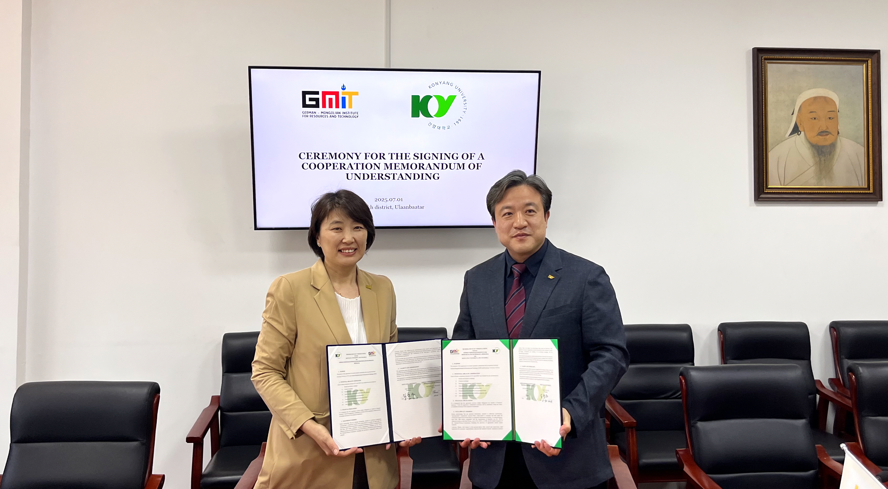 7월 1일, 건양대-몽골 GMIT대학교 MOU 사진(왼쪽부터 몽골 GMIT대학 바트칭겔 바타르 총장, 건양대 김대권 교학처장).jpg