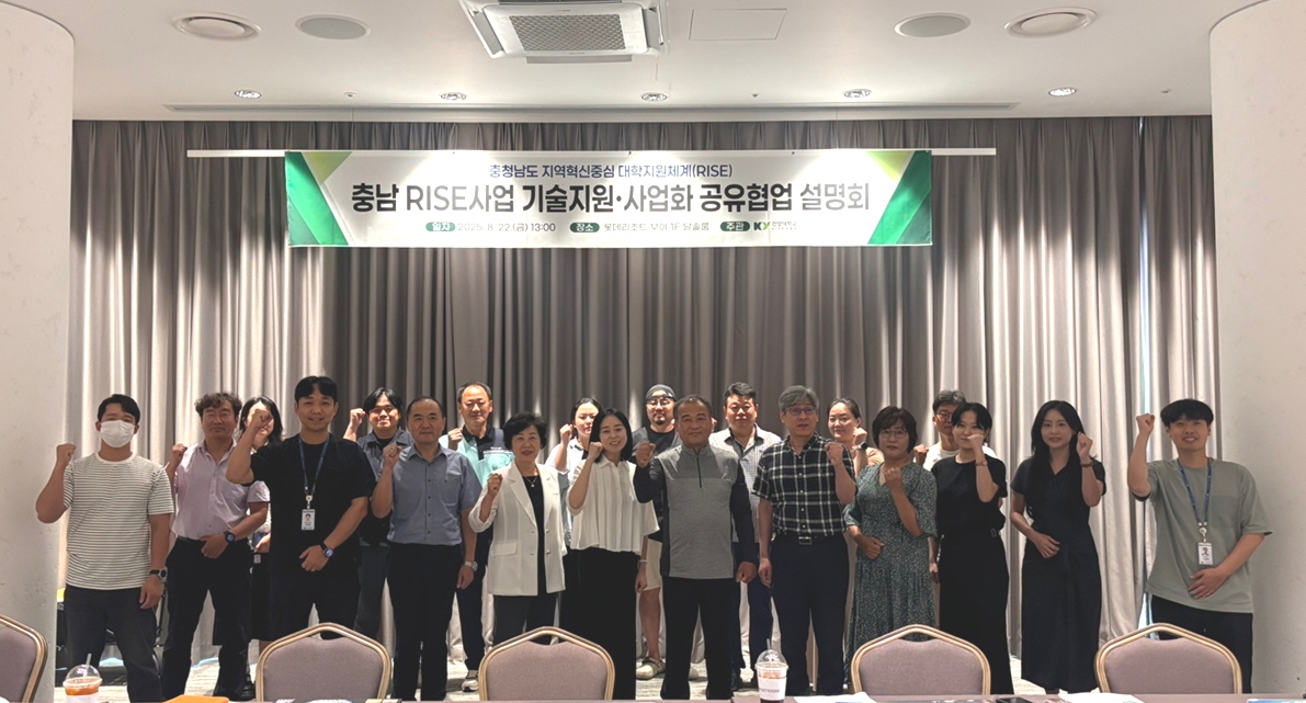 건양대학교(총장 김용하)는 지난 22일 부여 롯데리조트에서 지역 기업 대표 및 유관기관 관계자 30여 명이 참석한 가운데, ‘2025년도 충남 RISE 사업 기술지원·사업화 공유 협업 설명회’ 를 성공적으로 개최했다고 밝혔다.