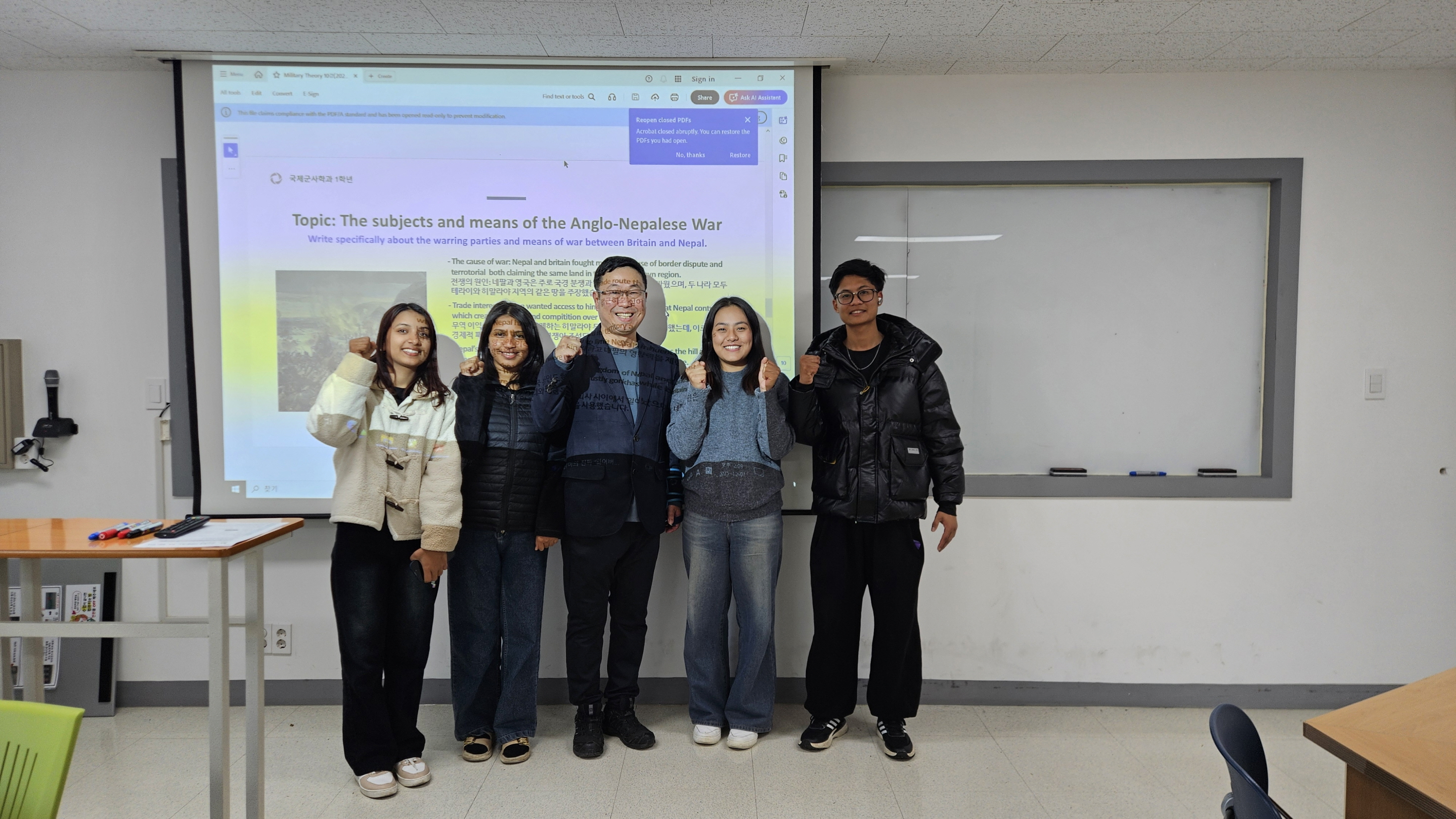 -국제군사학과 외국인 유학생, 군사학 국제화 첫걸음- 2025학년도 2학기에 인터내셔널칼리지에 국제군사학과 트랙이 처음 개설되었고, 네팔 학생 4명이 정식으로 입학했다. 이는 일반 대학교에서 군사학 교육의 범위를 국내에서 해외로 확장한, 매우 의미 있는 시도였다. 국제군사학과는 기본 과목인 군사이론과 한국어 교과목을 편성했으며, 홍준기 교수와 김충관 교수가 각각 강의를 담당했다. 학생들의 실천적 이해를 높이고자 팀 빌딩과 발표 중심의 활동형 수업을 진행했다. 홍준기 교수는 "새로운 실험의 시작이었지만 네팔 학생들이 뛰어난 성실성과 적극성을 보여주었다"고 한 학기 소감을 전했다. 한국어 교육을 담당한 김충관 교수는 "꾸준함과 열정으로 한국어 능력을 빠르게 발전시켰고, 수업에도 자신감 있게 참여하는 모습을 보여주었다"고 학생들을 칭찬했다. 네팔 학생 타파 마가르 크리티는 "발표, 토론, 팀 활동이 처음에는 부담이었지만, 교수님과의 지속적인 소통을 통해 빠르게 적응하며 흥미롭게 수업에 참여했다"고 소감을 밝혔다. 인터내셔널칼리지를 아시아 교육 허브로 성장시키기 위해 더욱 내실 있는 교육을 준비하고 있다고 학교 측은 강조했다.