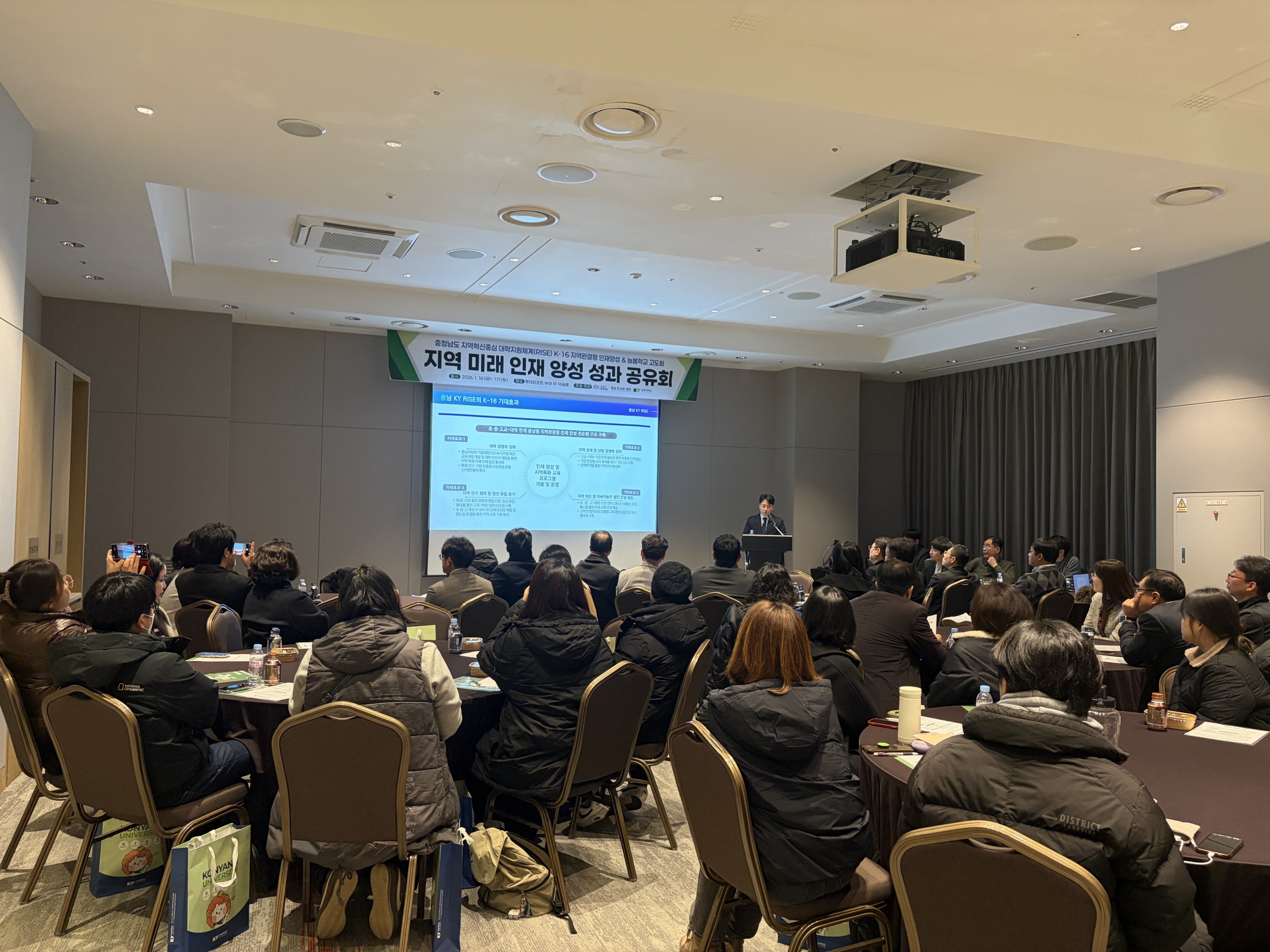지난 1월 16일부터 17일까지 롯데리조트 부여에서 건양대학교(총장 김용하)가 주최한 ‘2025 충남 RISE 지역 미래 인재양성 성과공유회’가 성공적으로 열렸다. 이 행사는 충청남도 RISE 사업의 핵심 과제인 K-16 지역완결형 인재양성 사업과 늘봄학교 연계 사업의 운영 성과를 공유하기 위해 마련되었다.