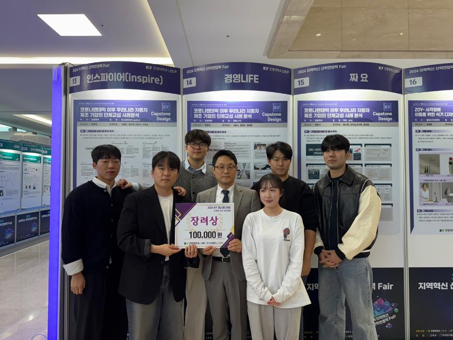 | 제목 | 2024 지역혁신 산학연협력 Fair 경영학부 '장려상' 수상 | ||||
